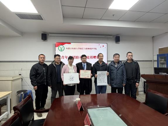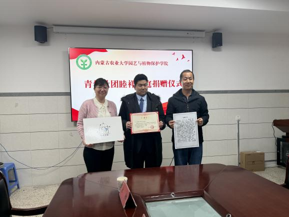 捐赠仪式在内蒙古农业大学园艺与植物保护学院420会议室举行。学院党委书记彭静,院长周洪友,副院长刘杰才、杨忠仁,园艺系主任李正男,设施农业科学与工程系主任宋阳出席了捐赠仪式。