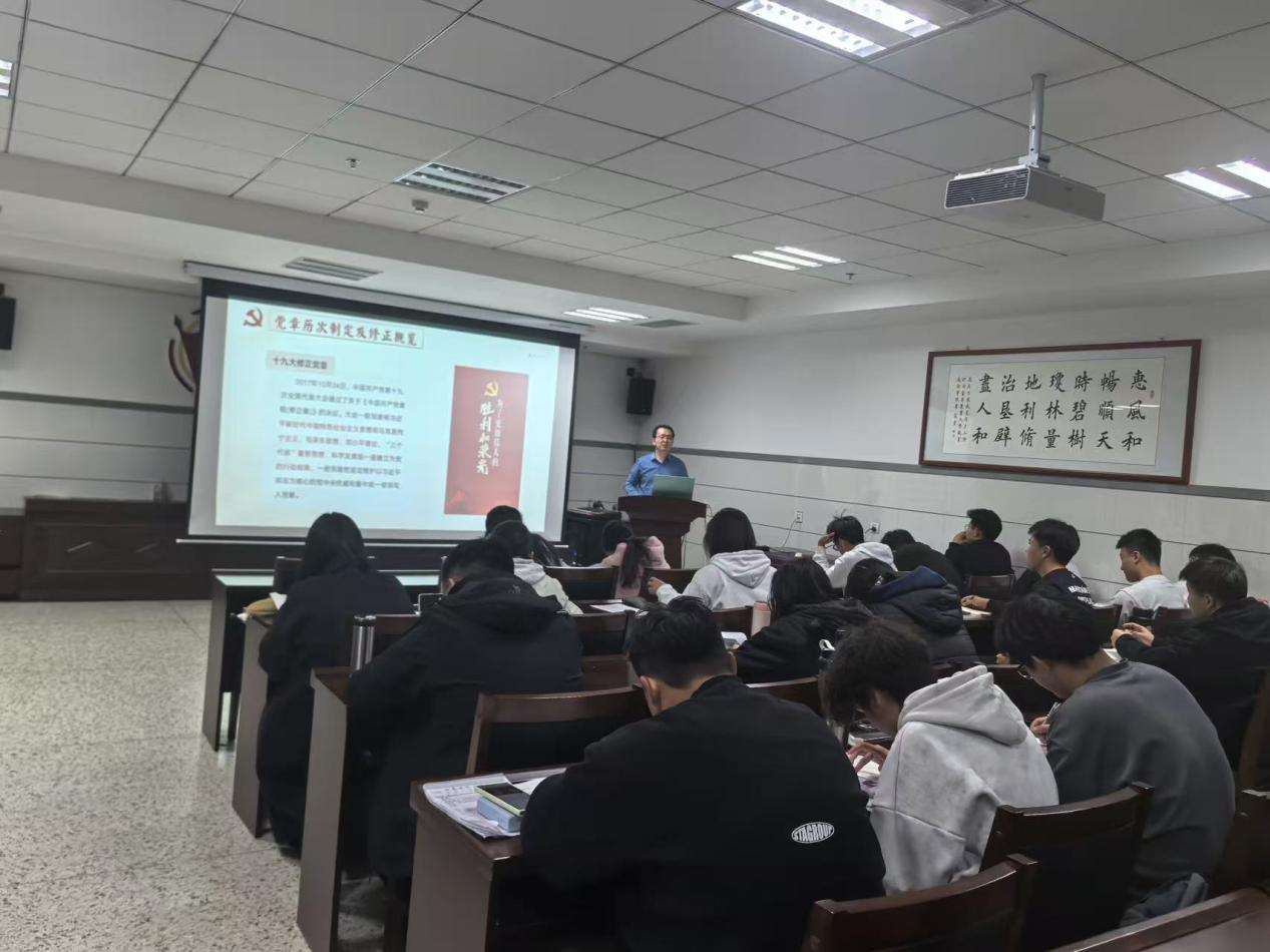 孙玉伟老师讲授了中国共产党章程的作用,列举了中共一大到中共二十大党章历次制定及修正概览,强调了党章是党的最高行为规范、党章是党员意志的集中体现、党章是教育党员增强党的意识的教科书、党章是党从严治党的根本依据。