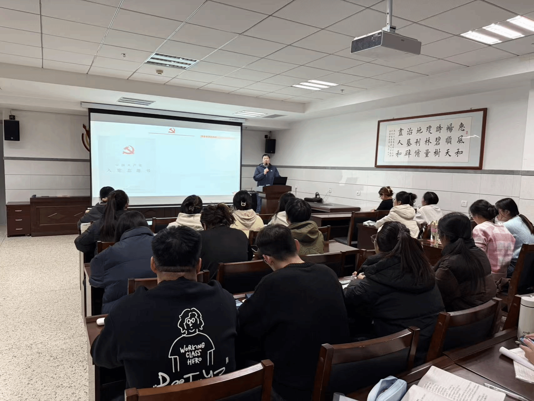 11月13日晚,园艺与植物保护学院第十四期发展对象在生科楼419室参加了第四讲党课学习。本次党课的主题为《发展对象应知应会:入党手续和组织生活》,由我校党委组织部李子冲老师讲授。