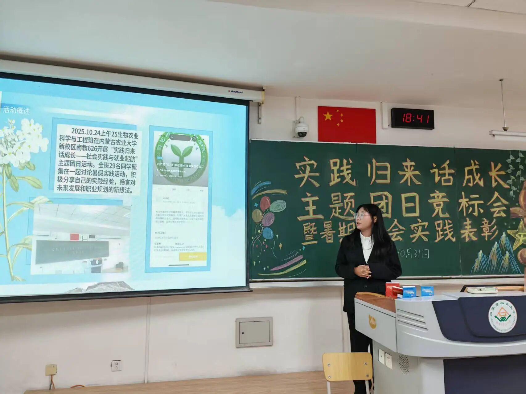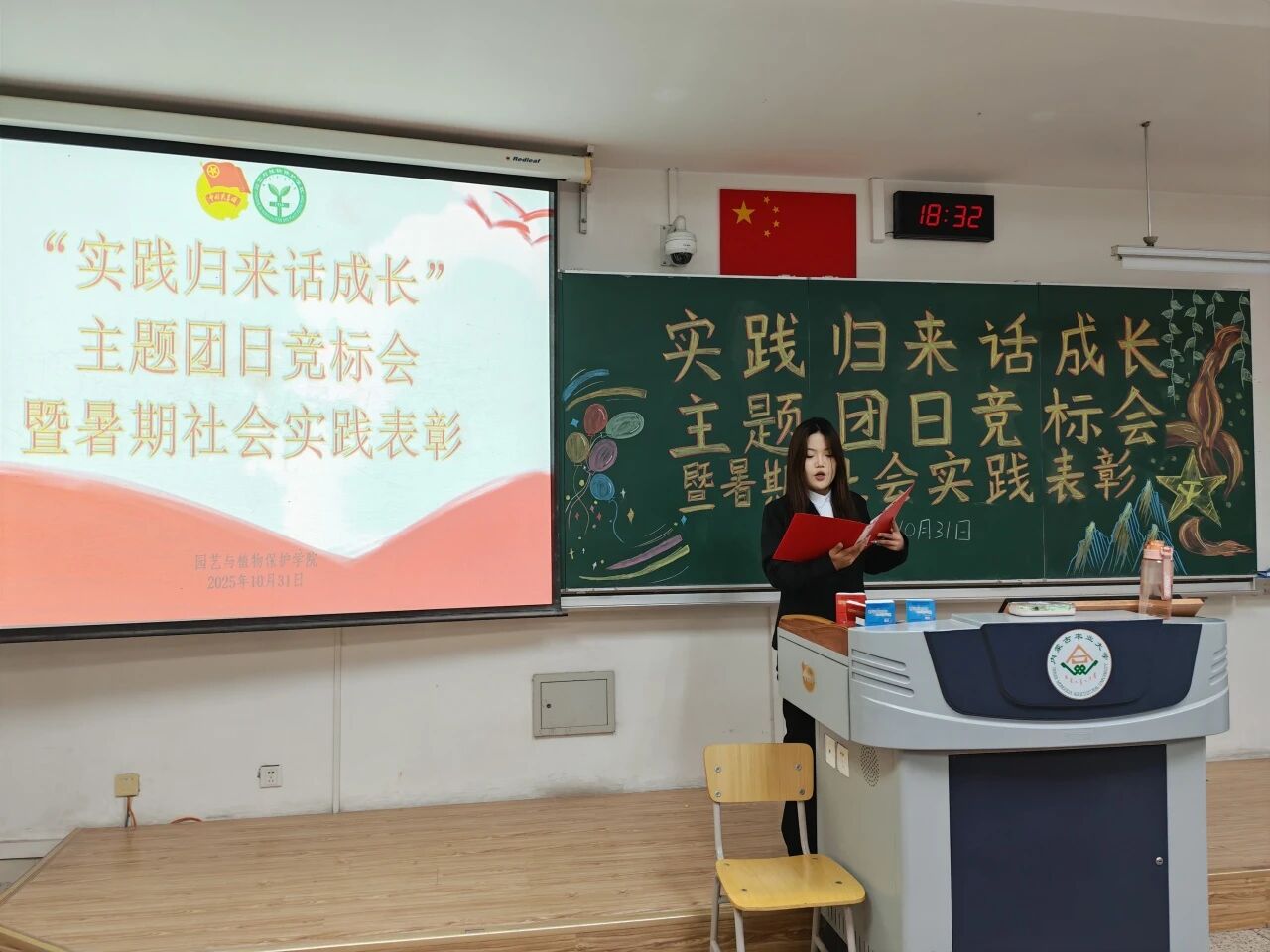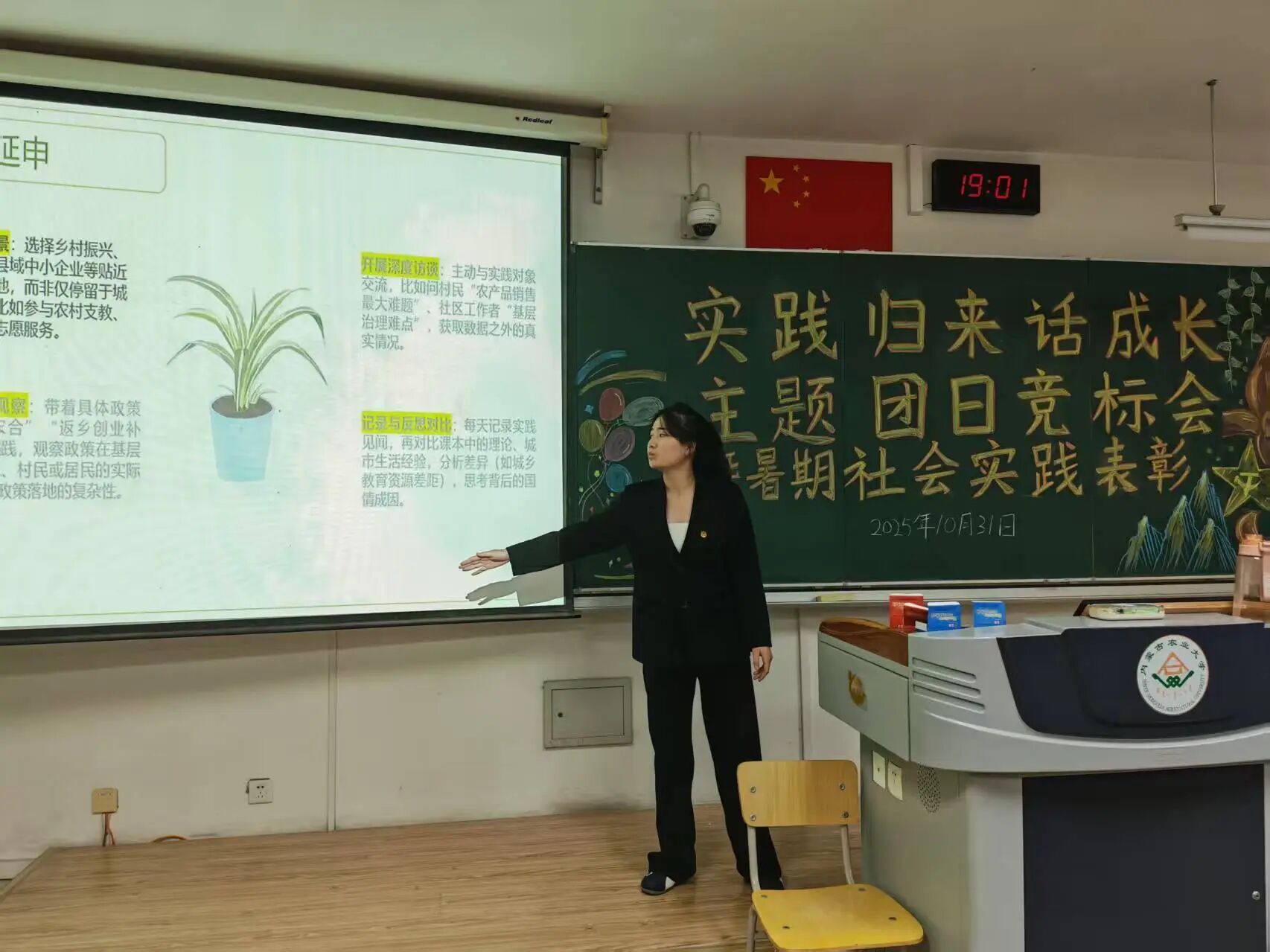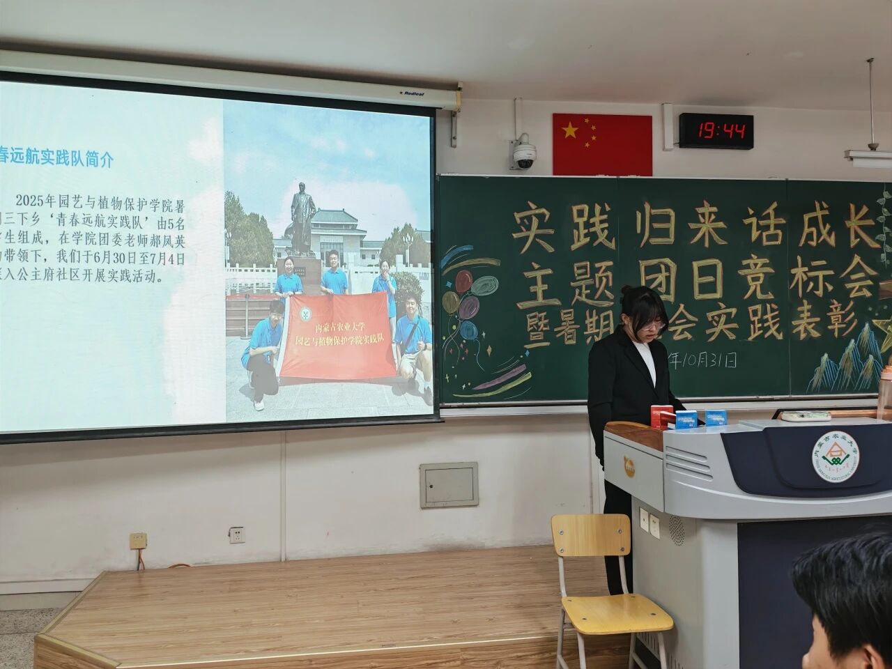 10月31日晚,园艺与植物保护学院“实践归来话成长--暑期社会实践与就业起航”主题团日竞标会暨暑期社会实践表彰大会在南教221教室顺利举行。大三学生干部吴雨轩、宋百轩及第八届分团委主席团全体成员受邀担任评委,刘诗甜担任主持人。经过前期筛选,共有来自三个年级的9个团支部进入现场汇报环节,全体团干部及优秀社会实践队员等90余人参加。