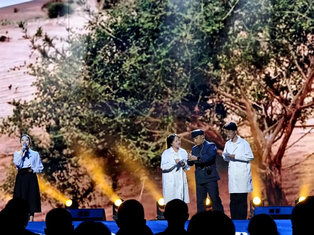 我院选送节目《梭林传声 青春应答》(该作品曾获全区“北疆新生代 青春讲中国”高校青年学生理论宣讲大赛决赛特等奖),以极具感染力的艺术表达震撼全场。该作品以阿拉善盟额济纳旗黑城遗址为叙事起点,通过主讲人翟桂莹饱含深情的讲述,带领观众穿越时空,回到驼铃悠扬的古丝绸之路。将苏和老人的感人事迹艺术化地呈现在观众面前,让学生直观感受坚守和奉献的精神力量。