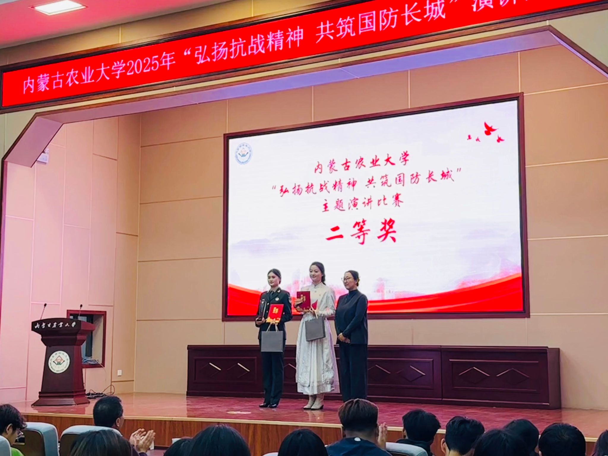 在10月29日我校举办的“弘扬抗战精神,共筑国防长城”主题演讲比赛中,我院2024级园艺2班马越同学表现优异,荣获二等奖。