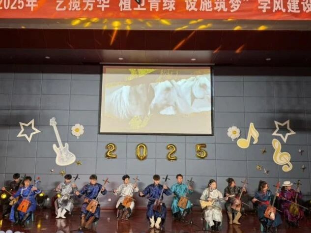 开场节目《万马奔腾》用雄伟悠扬的马头琴声拉开了迎新晚会的序幕。