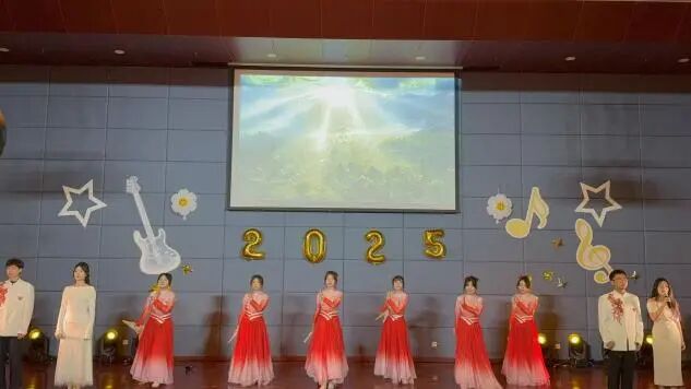 歌曲联唱《亲爱的你啊》《灯火里的中国》《自由自在》让同学们在家国情怀中感受青春与温暖。