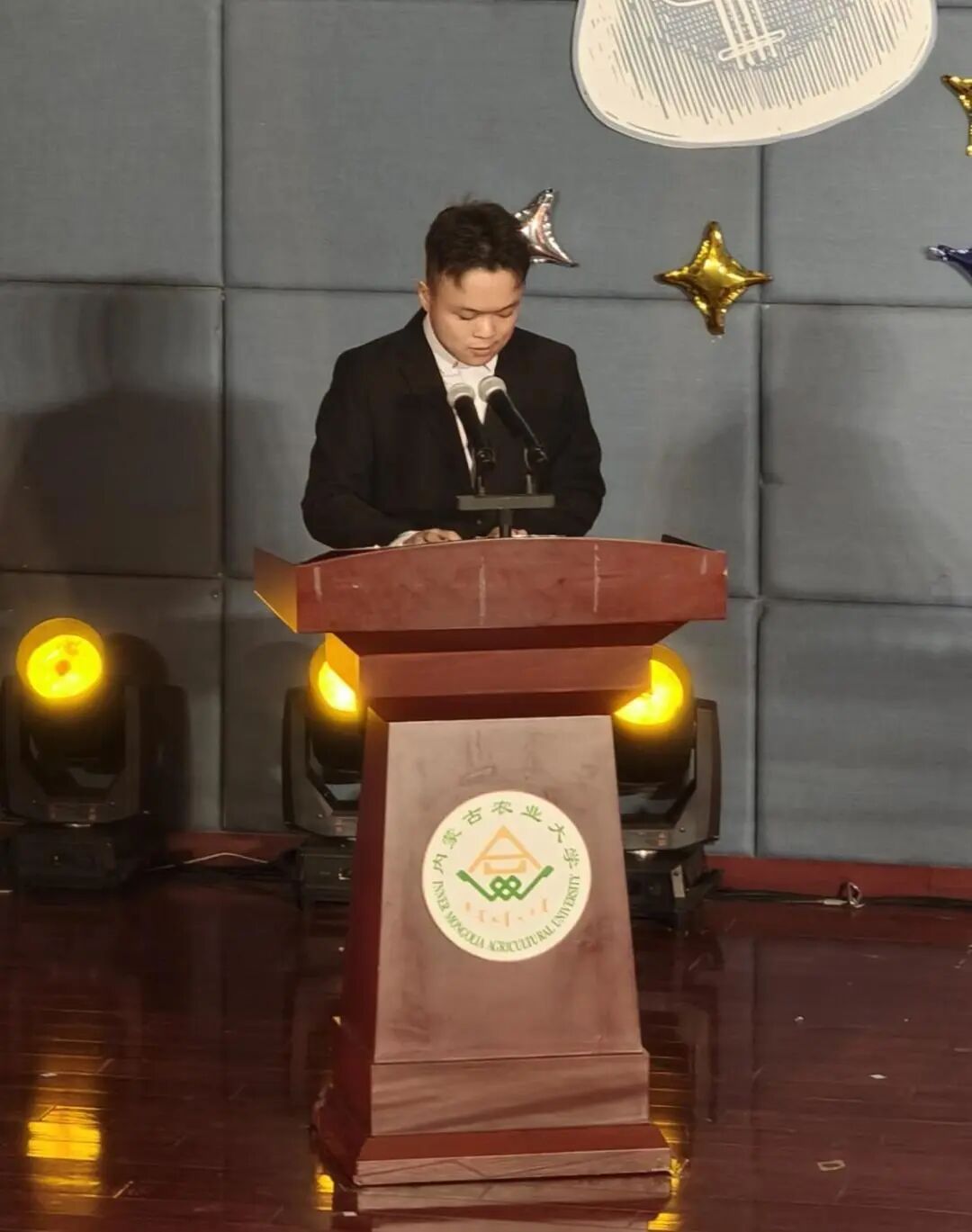 23级园艺一班获奖代表翟桂莹同学上台分享成长感悟。她结合自身学习与班级建设经历,讲述了如何在专业学习中保持专注、在集体活动中凝聚力量,朴实的分享让在场同学深受触动。紧接着,优良学风进步班22级设农二班学生代表孟彻也上台分享。他介绍了自己平常的生活学习状态,如何在日常中找到自我和目标,以及如何带领班级更好融入学习氛围之中,传递出“抱团成长,互助共赢”的班级精神。