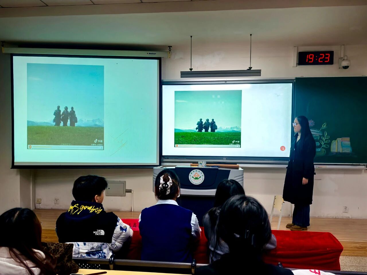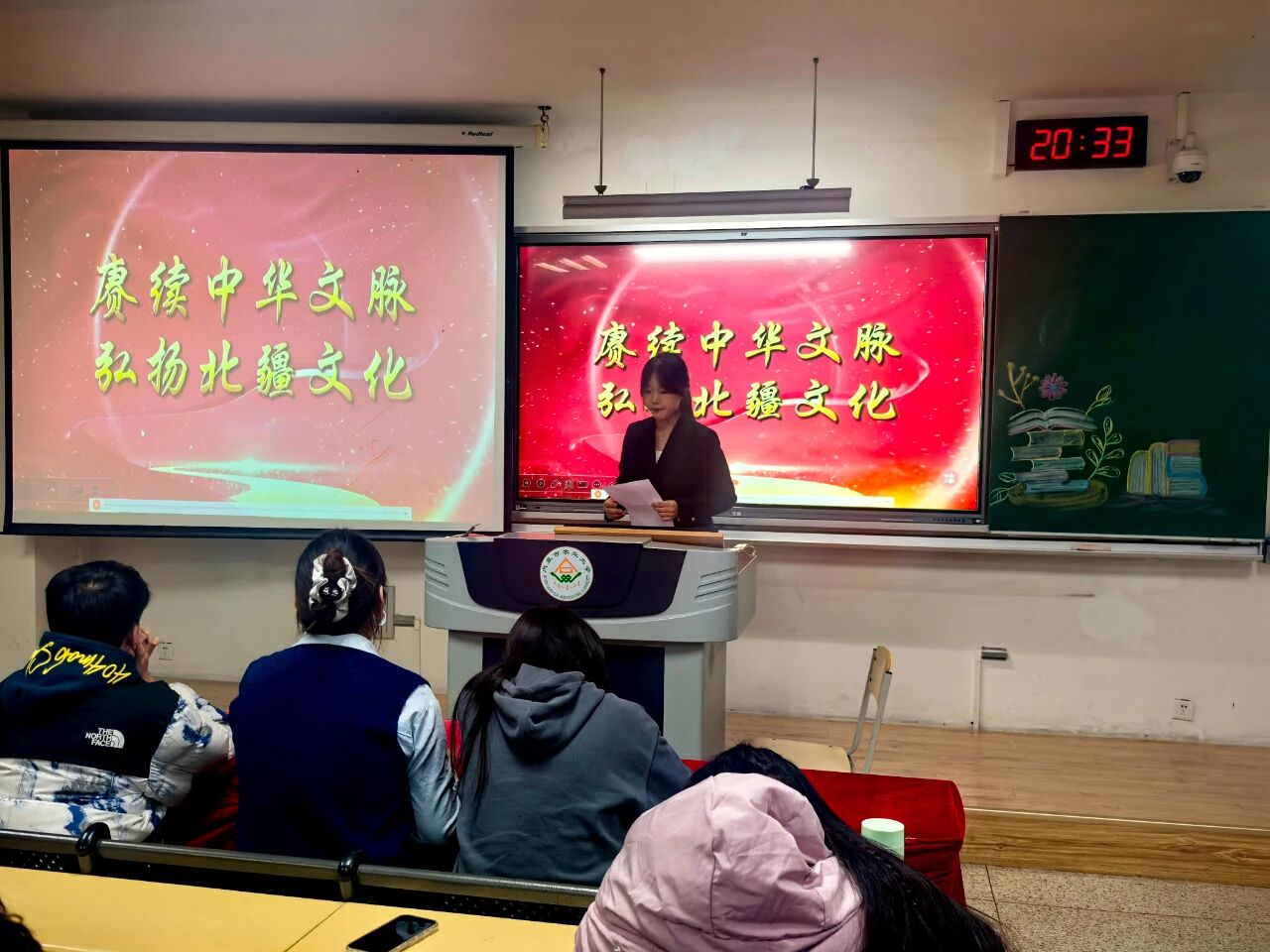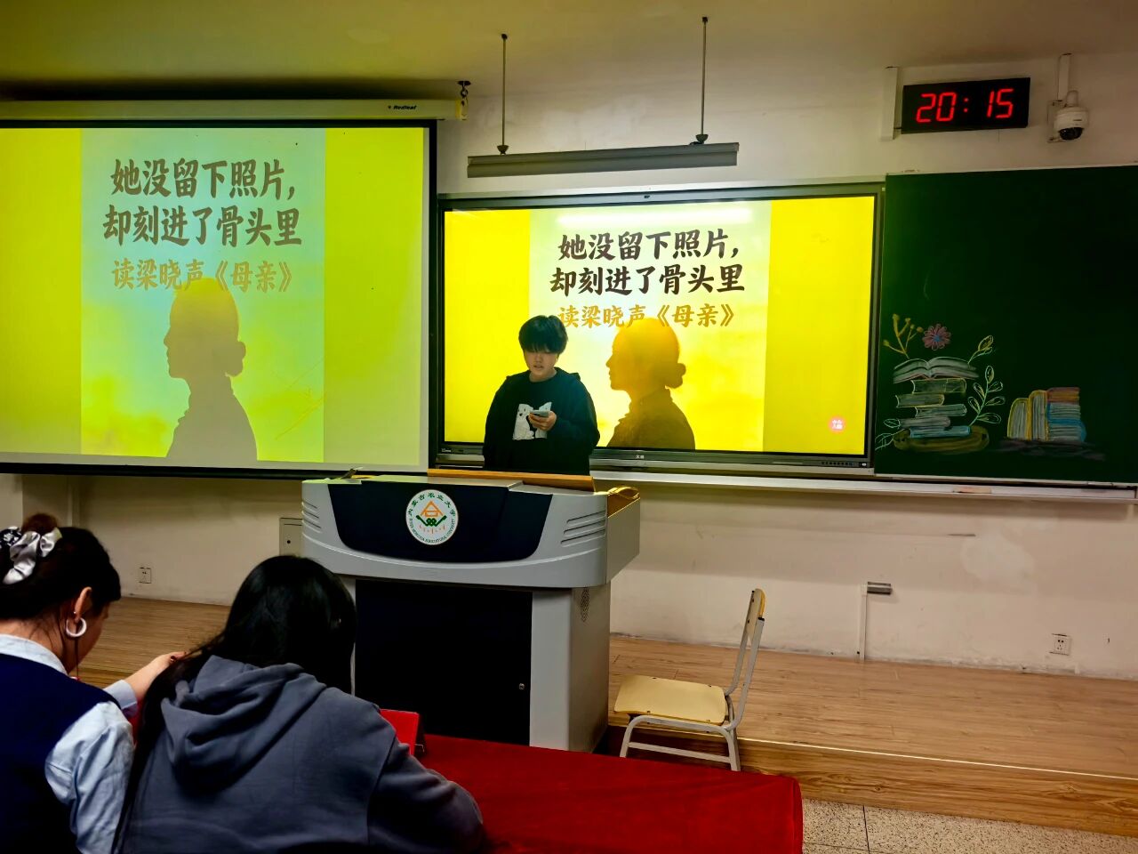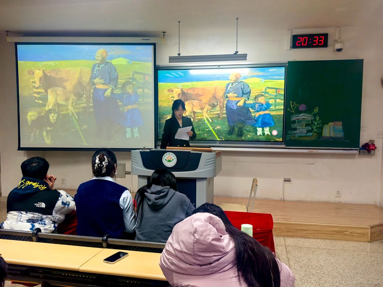 活动伊始,主持人介绍了本次分享会的流程与评分规则,随后14位分享者依次登台,以书籍为纽带,串联起北疆大地的故事与情感。24级园艺一班李妍柔、24级植保二班周玥婕、25级设农一班张雪清、24级园艺一班亢雪彬、24级园艺三班李淼五位同学围绕《都贵玛:28个孤儿的草原母亲》展开分享,有人聚焦收养孤儿的日常细节,有人挖掘故事里的草原精神,让这份跨越民族的温情在多重视角中愈发鲜活;25级设农三班王学鹏、24级植保三班朱向征、24级植保三班李欣欣三位同学以《母亲》为载体,分别从成长羁绊、故土联结、亲情重量等维度,勾连起个人情感与北疆大地的人文底色;24级园艺一班李妍柔携《阿勒泰的果实》铺展新疆阿勒泰的风光与生活,25级设农一班于佳旭借《荒原筑梦》讲述北疆建设者的征程,25级设农二班宋佳俊以《准噶尔之书》追溯北疆历史脉络,25级植保二班于若菡用《逃跑的马》解锁北疆文学的灵动意象,25级设农一班赵佳琪凭《西夏王》铺开北疆王朝的历史长卷;25级设农二班郭佳瑜以《科技报国——35位科学家多信仰选择》传递北疆儿女的赤诚,23级植保三班郭一冉借《邓稼先——知识分子的榜样》致敬科研者的精神底色。选手们以真挚的情感、深刻的见解,展现了他们对书籍的独到理解与思想感悟。