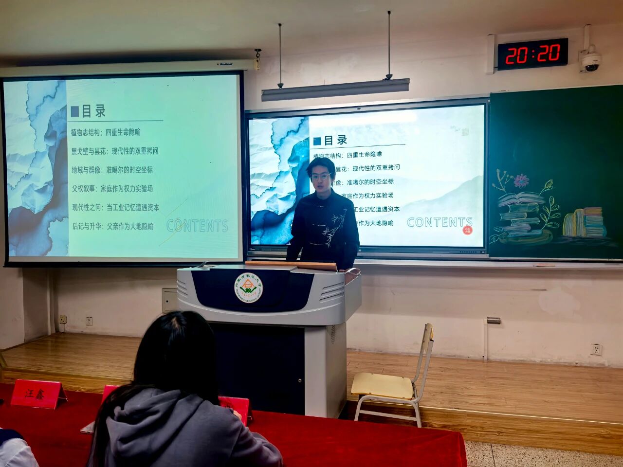在北疆广袤的天地间,书香正悄然浸润心田,文化的脉络在书页间静静延展。由图书馆与园艺与植物保护学院联合主办的“北疆文韵,书润心田”主题读书分享活动第二阶段于12月4日在南教201教室举行。本次活动汇聚了14位来自各班级的分享者,职协主席杜冉、职协主席吴雨轩、学生分团委副书记汪鑫担任评委,现场由黄佳同学主持。