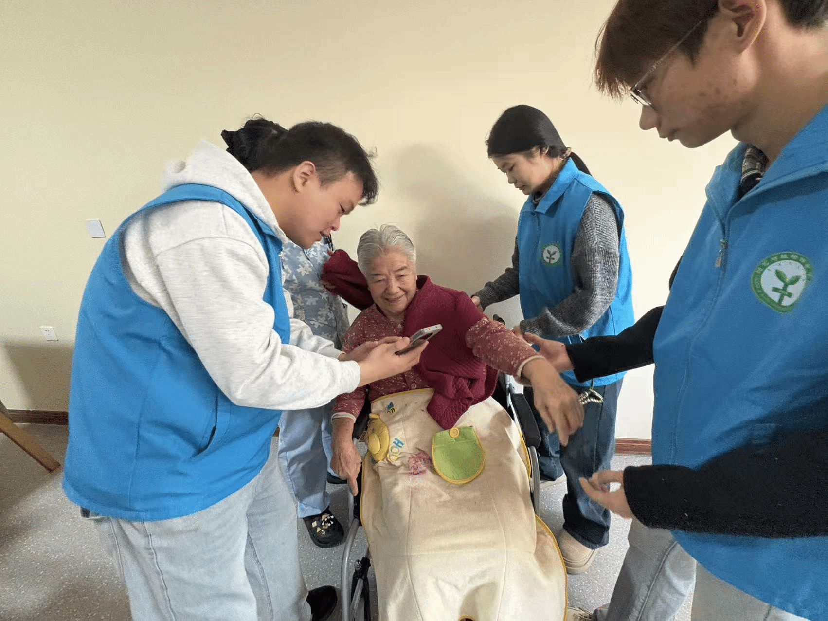 新春将至,年味渐浓。为弘扬尊老、敬老、爱老的中华传统美德,营造温馨祥和的节日氛围,我院志愿者服务队成员于12月28日下午前往呼和浩特民政福利园参加“为老人拍新年照送祝福”志愿服务活动。