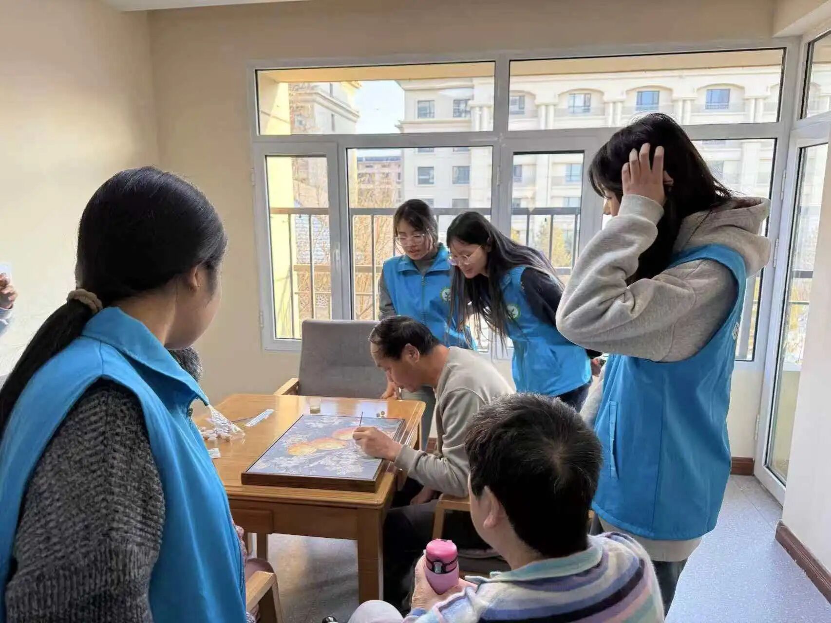 志愿者们早早齐聚民政福利园,在完成准备工作后,立即以亲切的问候与老人们建立起温暖的联系。活动中,志愿者们主动搀扶行动不便的长者,细心为他们整理衣衫、梳理头发,并围坐在老人身旁,聆听他们分享往事。老人们的脸上洋溢着笑容,园内充满了欢声笑语,气氛温馨而融洽。
