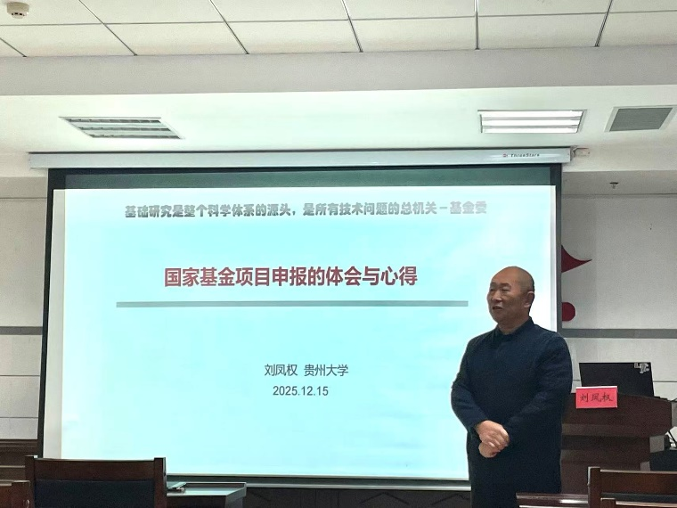 为提升我院2026年度国家自然科学基金项目的申报质量和立项率,我院于2025年12月15日在新区生命科学大楼419会议室举办了国家自然科学基金项目申报讲座。本次会议特邀贵州大学农学院知名学者刘凤权教授作为主讲嘉宾。